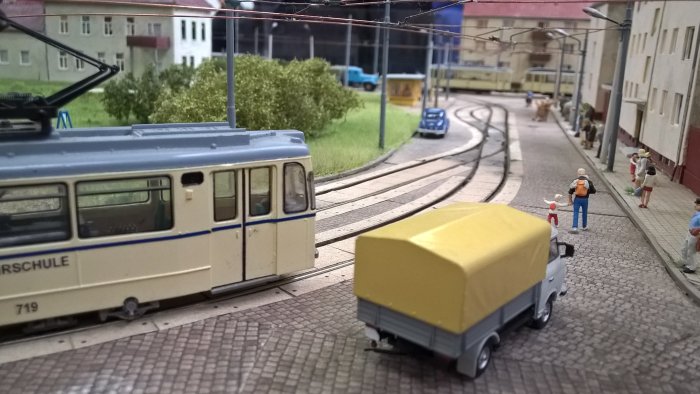 Die Gesamtanlage schließt mit einigen Längenkompromissen die Lücke zwischen Kastanienstraße und Rothensee. Zunächst geht es auf einer kurzen Fahrstreckenverlängerung (diese bestehen zumeist aus 80 Zentimeter tiefen Anlagenteilen mit Regelquerschnitt [nach Mamostra-Regel]) bis zur Nachtweide und hier in einem großen, vorbildähnlichen Gleisbogen an der Turnhalle vorbei über den Schöppensteg zur „Kalten Hand“ (wohl die Ecke an der Endstelle Zoo-Neue Neustadt, wo heute ein Autohändler ansässig ist) an der Ecke Curiestraße (nicht zu verwechseln, weil der Magdeburger das gerne so spricht, mit Curry). Hier findet sich nun die Endhaltestelle Robert-Meier-Straße, in deren Grünrondel sich der typische Gemeindebau in der Grünanlage befindet und auch das Kino auf der anderen Straßenseite ist wiedererkennbar auszumachen. Durch die Pettenkofer Straße (wieder als „Fahrstreckenverlängerung“ schmal gebaut) geht es nun dem S-Bahnhof Eichenweiler entgegen, wo sich die Haltestelle auf der Brücke befindet.