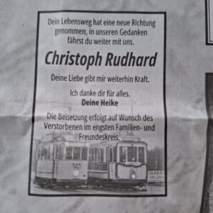 Mit tiefer Trauer geben wir den Tod unseres geschätzten Vereinsfreundes Christoph Rudhard bekannt. Mit 72 Jahren hatte er noch große Pläne.